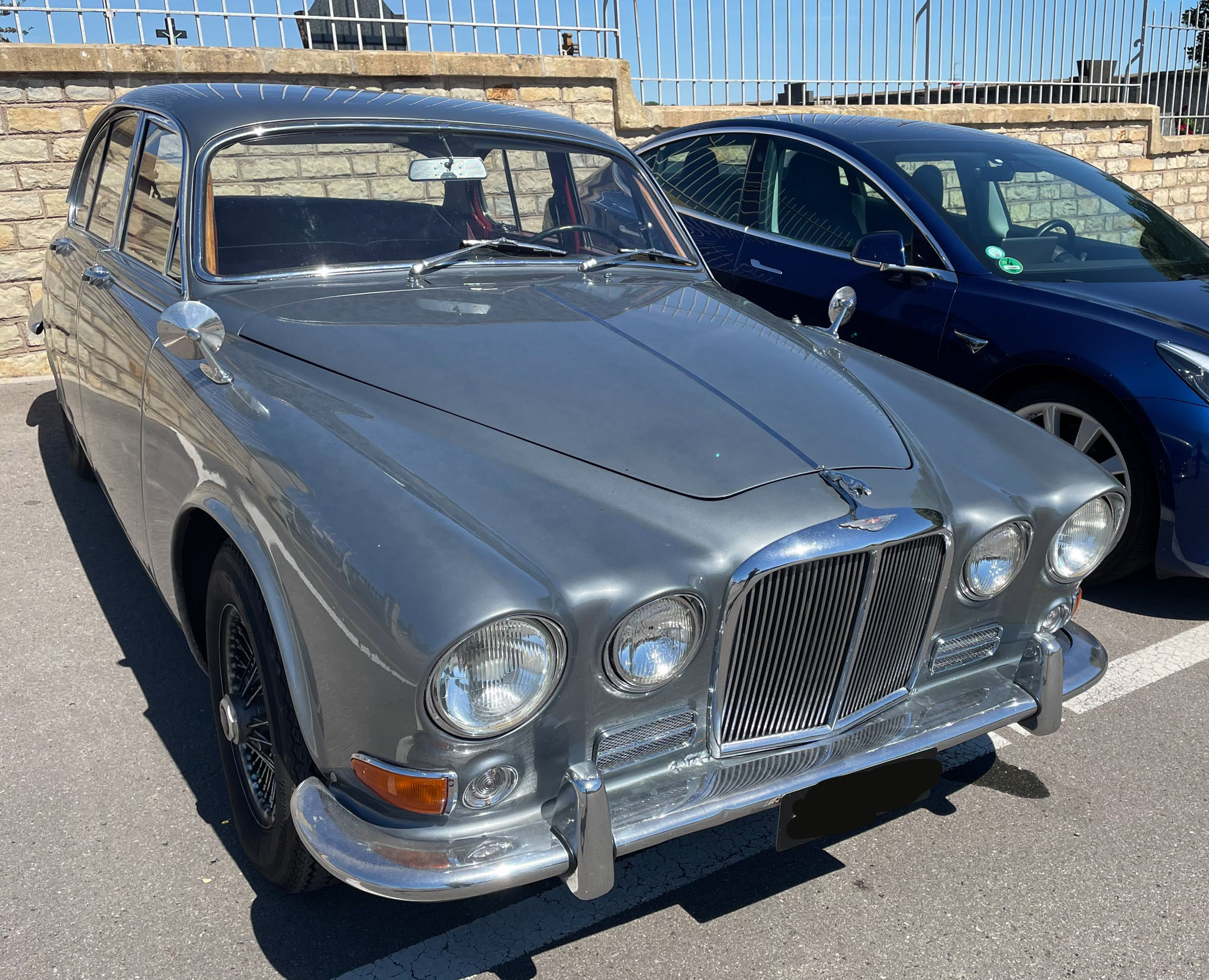 This 1968 Jaguar 420 is a rare car, as it was only produced for two years (1966-68) as a transition from the S-Type to the XJ. As such it has a rear very similar to the S-Type, and a front already suggesting the XJ. The engine is the 4.2 l straight 6 with a manual transmission featuring an overdrive.